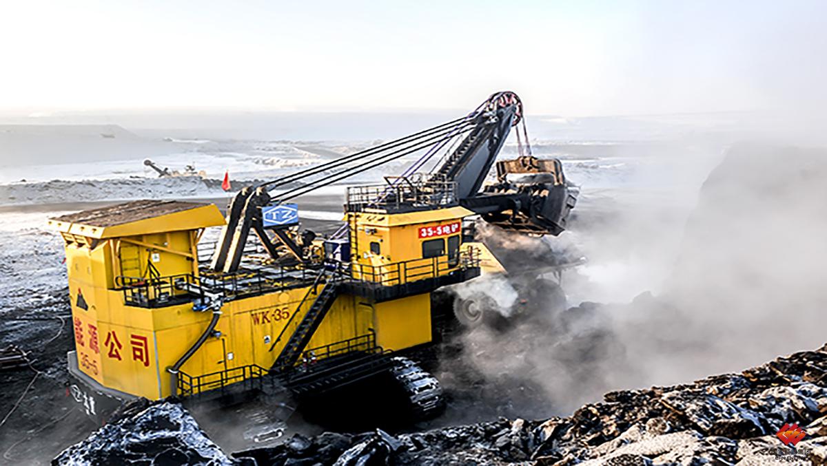图为严寒天气下的宝日希勒露天煤矿生产现场