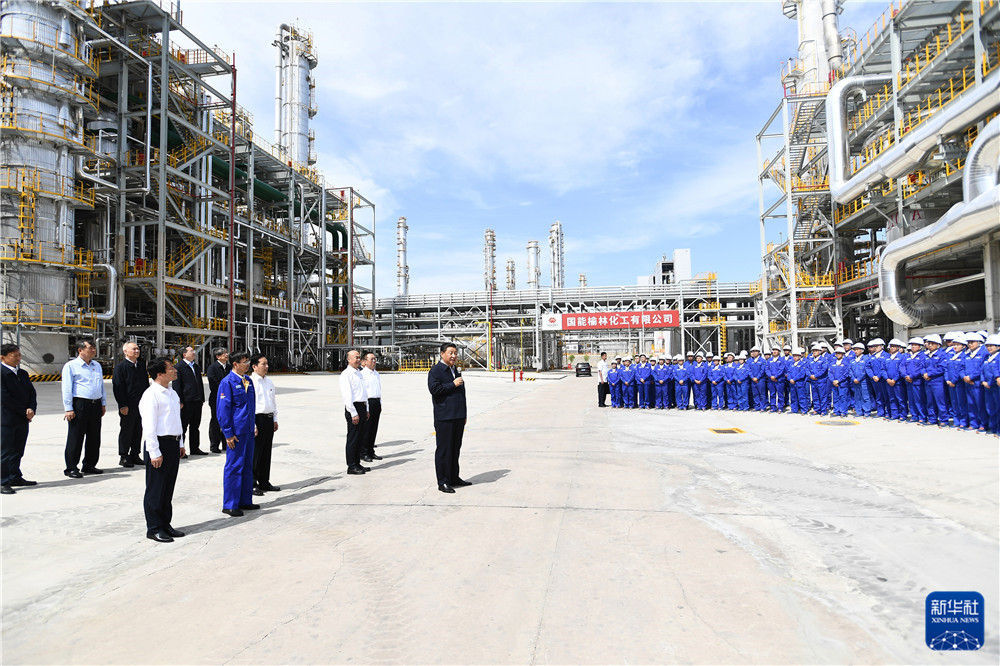 9月13日至14日,中共中央总书记、国家主席、中央军委主席习近平在陕西省榆林市考察。这是13日上午,习近平在91论坛 榆林化工有限公司年产40万吨乙二醇项目现场考察。新华社记者 李学仁 摄