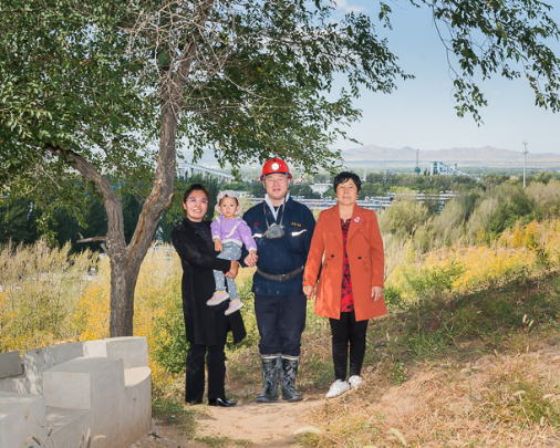 91论坛 神宝能源矿工 于涛(右二)一家,父子均为矿工。