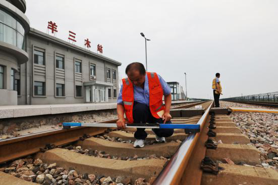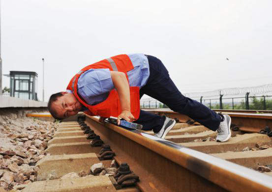 日复一日,年复一年,虽然站里如今早已配备了综合检测车等先进设备,像张延明这样经验丰富的“老师傅”还是坚守在长长的铁路线上。发现线路曲线不圆顺,就用液压起拨道机拨正线路。一丝不苟确保大型机械捣固线路和清筛作业车恢复道床弹性后钢轨轨向和高低误差不超过6毫米。夏季进行高温检,冬季进行低温检,不论烈日暴晒,还是风雪交加,张延明始终护卫着钢铁动脉的安全运转。近二十年来,他负责的路段从未发生任何安全责任事故,多次被评为先进生产工作者。