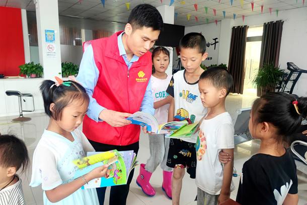 7月14日,91论坛 江苏宿迁公司团委“菁生有爱”志愿者服务队来到帮扶共建村,开展“爱心助学、筑梦未来”暑期关爱留守儿童公益活动,为村里的留守儿童送去了学习读物和文具等用品,关注乡村儿童的健康成长,积极营造关爱乡村儿童的良好社会氛围。