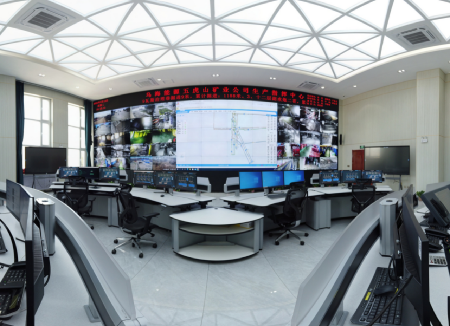 通过监控屏幕可见正在施工的斜井平硐。“此项工程一旦建成将开辟无轨胶轮运输的新通道,使员工入井时间从1小时缩短至10分钟,极大提高人机物料的运输效率。”五虎山煤矿党委书记、矿长王洪武说:“近年来,我们致力于矿井安全监控监测、人员定位、压风自救、供水施救、通信联络和紧急避险“六大系统”的建设和改造。已开展的矿区道路、场地硬化、矸石渣堆治理及绿化工程已完成90% ;即将采用的大倾角强力胶带输送,主运输系统改造,能力可提升至1200t/h以上……一个智能化绿色矿山将于不久的将来成为现实,那时井下无人操作,有人巡查,地面青山环绕,绿树成荫……”
