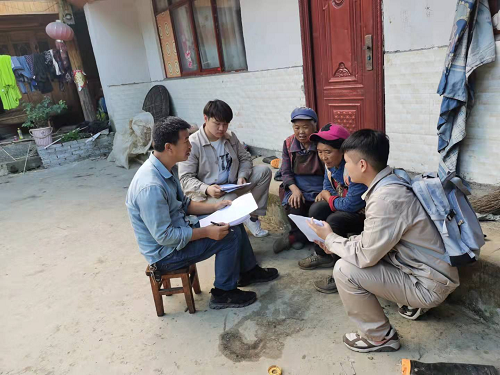 图为驻村干部入户了解种养殖务工情况