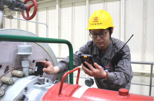 王锎在精心巡视设备。